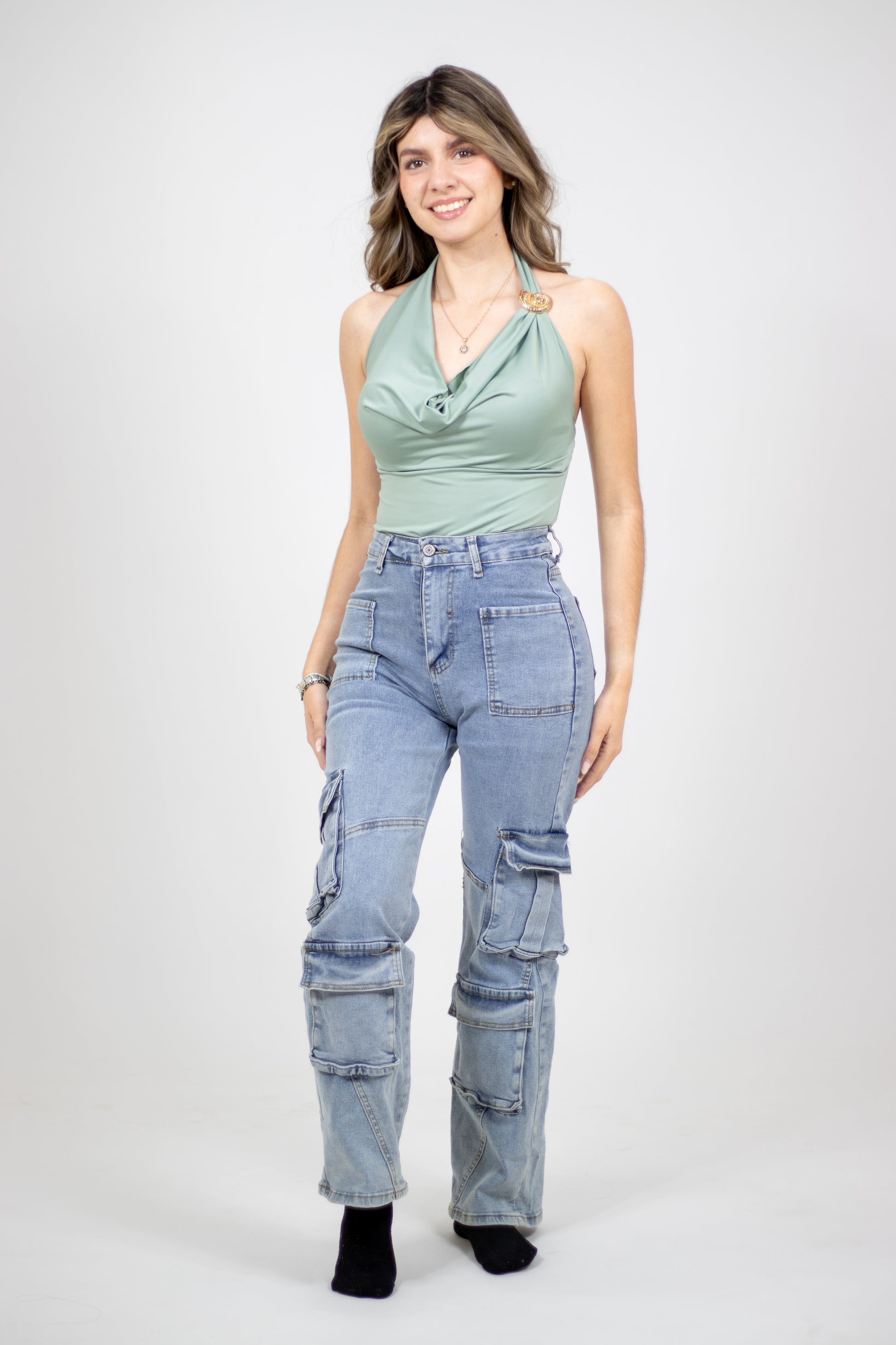 BODY CON BROCHE DORADO
